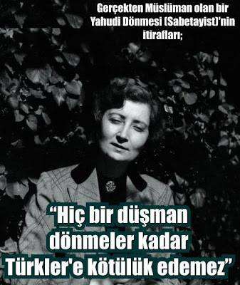 — Siz, dedi, dönmelerin bu memlekete ne derece zararlı olduğunu bilemezsiniz. Hiçbir düşman, dönmeler kadar Türkler’e kötülük edemez. İktisadî, içtimaî/sosyal ve bilhassa kültür sahalarında öyle planlı düşmanlıkları vardır ki, bunları ancak benim gibi o soydan gelmiş ve aralarında yetişmiş bir kimse bilebilir. Benim bir Müslüman-Türk’le evlenmiş olmam, hepsini deli etti. Ailem ve hatta anam, aleyhime öyle işler yaptılar ki, çevirdikleri oyunlarla beni kuru tahta üzerinde bıraktılar. Buraya gelişimin sebebi, dönmeler hakkında kulağınızı bükmek ve onlardan uzak durmanızı tavsiyedir, dedi ve çıkıp gitti. O zaman bu zaman kendisini bir daha hiç görmedim.