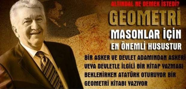 Geometrinin Masonlar için en önemli husus olduğuna dikkat çeken Altındal, ‘ 1717 tarihli Mason Anderson Anayasası’nın birinci maddesinde şöyle bir madde var; ‘Her Mason’un kalbinde geometri yatar.’ Öyle başlar. Dedim ki; çok manidar yani garip bir durum. Devlet Başkanı ve asker olan bir şahıs niçin yazsın diye yazmış ‘ diye konuştu.